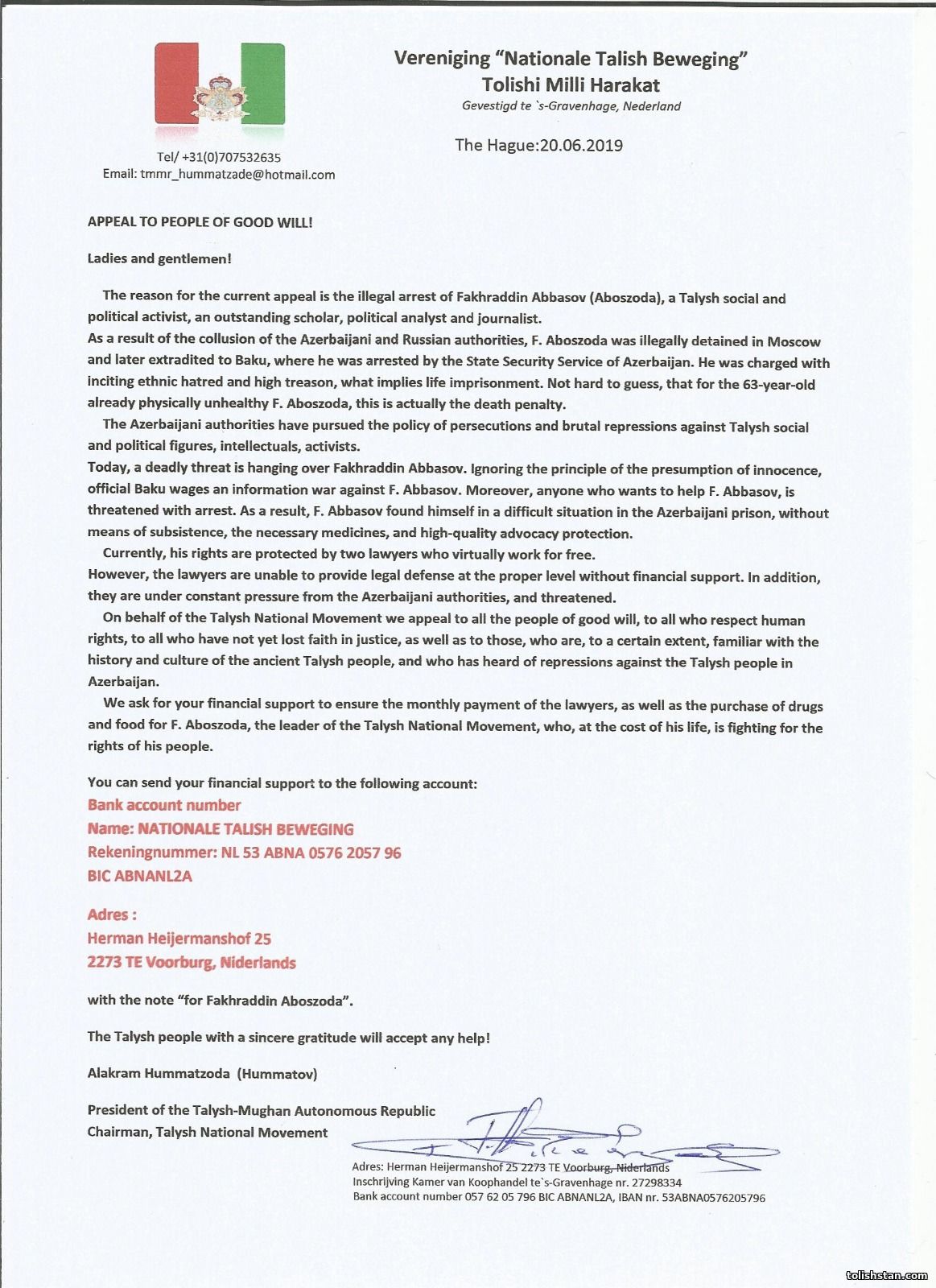 TMH və TMMR-nin Mühacir hökuməti Taleh Bağırzadəni təbrik edir. TMH və TMMR-nin Mühacir hökuməti Taleh Bağırzadəni təbrik edir.Bu gün, Müsəlman Birliyi Hərəkatının lideri, siyasi məhbus, |
